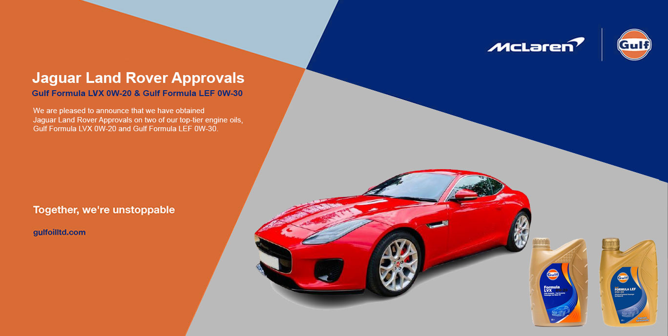We are pleased to announce that we have obtained Jaguar Land Rover Approvals on two of our top-tier engine oils, Gulf Formula LVX 0W-20 and Gulf Formula LEF 0W-30.